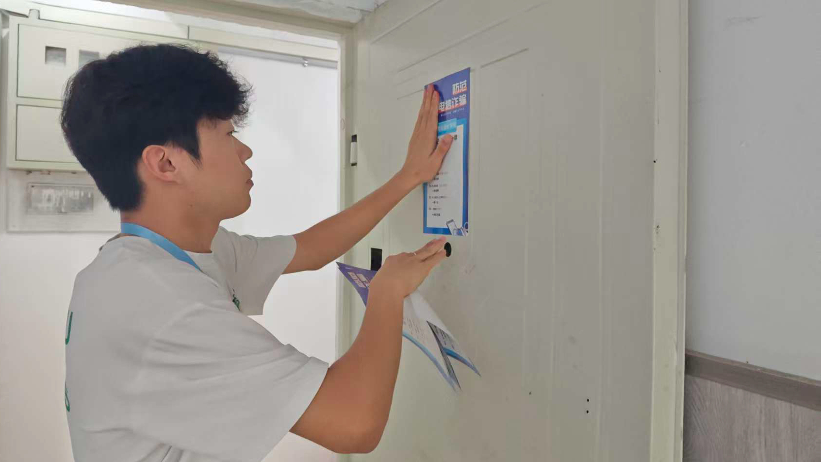 活动前期,在学院团委的指导下,青年志愿者协会与学生党建工作站成员分组前往新生宿舍楼,逐栋逐单元张贴反诈宣传单。宣传内容聚焦“刷单返利”“校园贷”“冒充电商客服”等学生群体易遭遇的诈骗类型,并突出“牢记六个一律”等关键要点,帮助新生在出入宿舍时直观感知诈骗风险,实现“进门见警示、出门记防范”的常态化宣传效果。