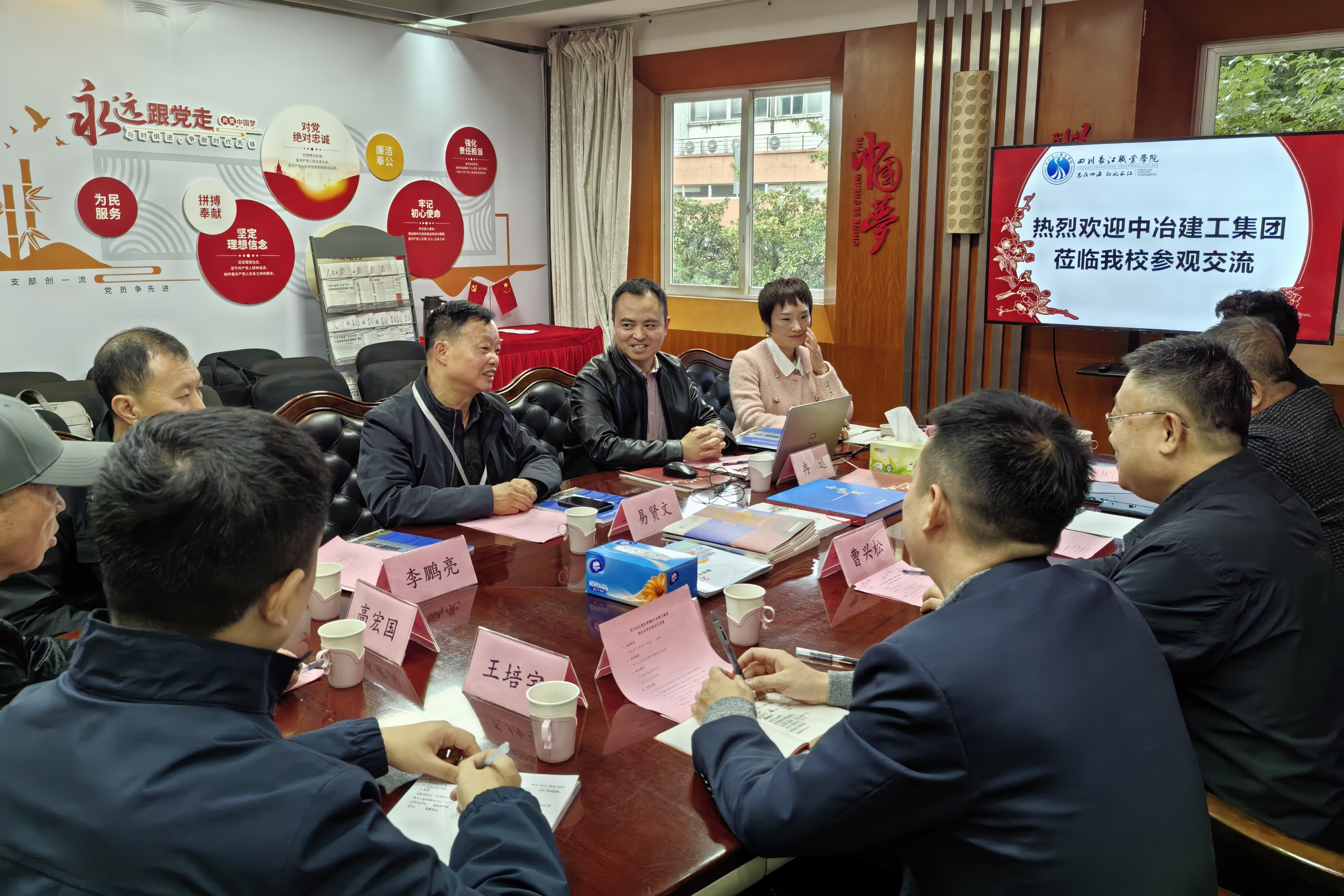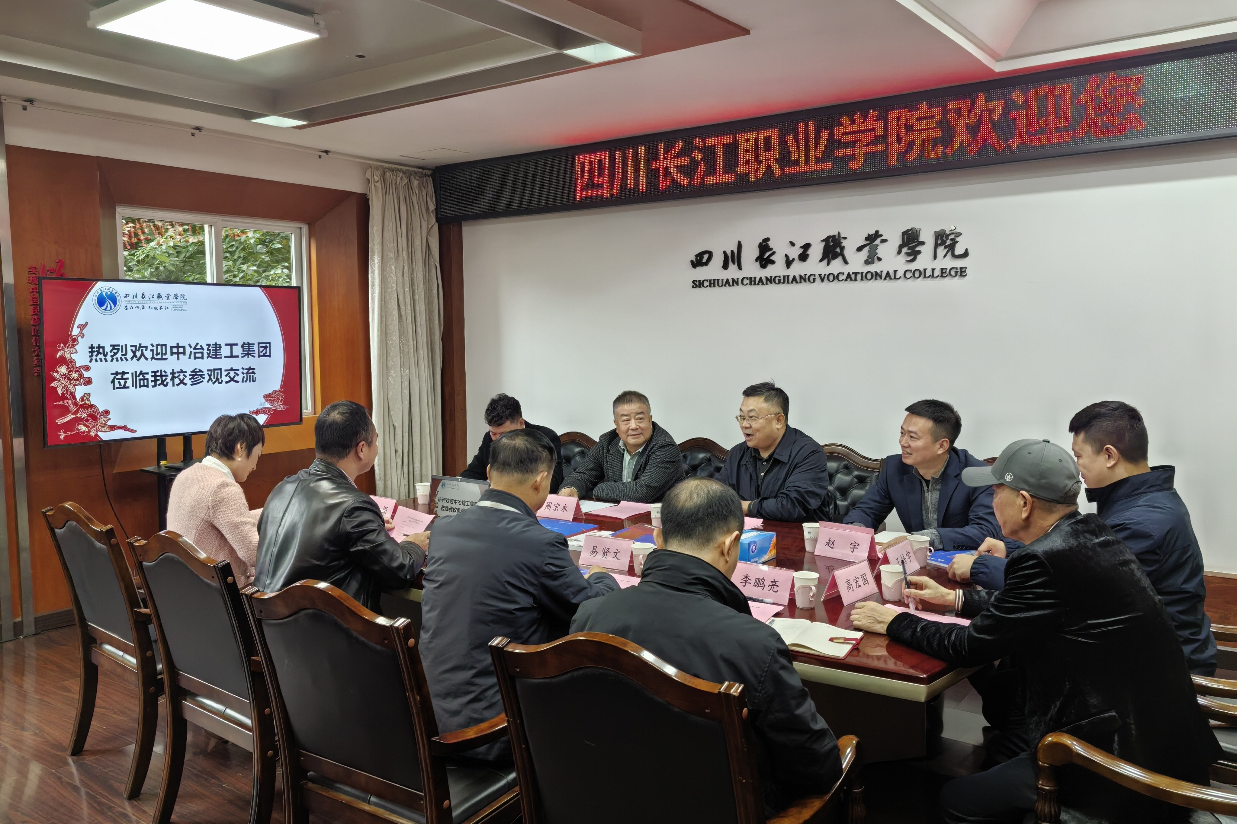 易副校长介绍了学校办学历程、办学成果、特色等,冉副院长介绍了智慧城市与低空应用技术学院专业建设和产教融合等方面的建设情况,李部长介绍了学校在社会服务、技能鉴定等方面的情况。中冶建工集团则展示了企业雄厚的综合实力、数字化建造能力与海外业务布局,作为央企承担的社会责任和担当,并分享了在高校产教融合项目中的实践经验。