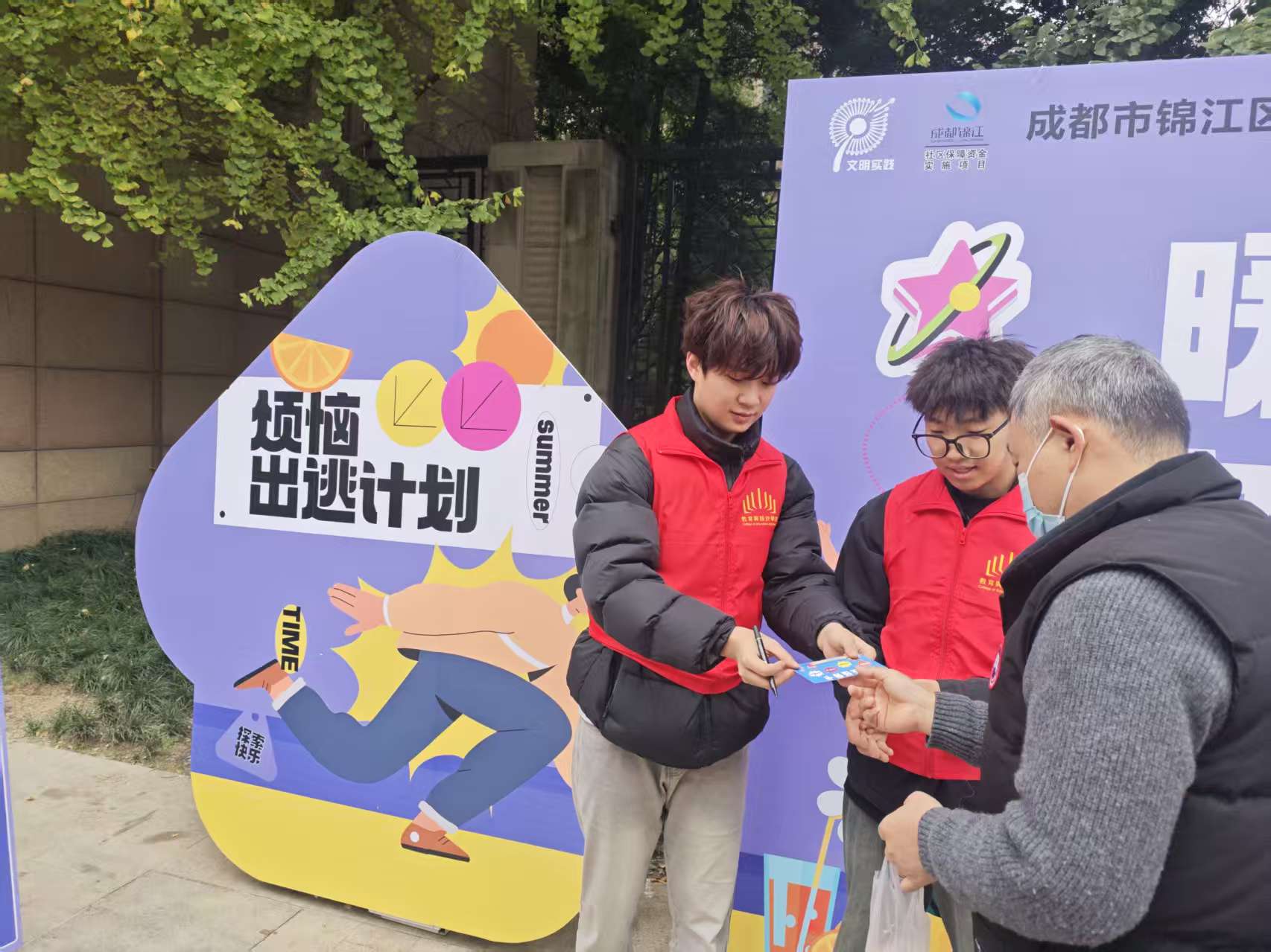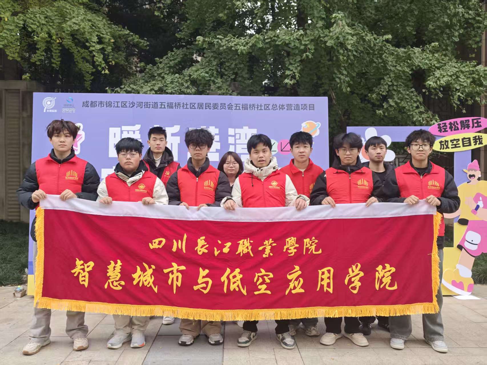 【本网消息】(智慧城市与低空应用学院 杨福生供稿)为关爱辖区内快递员、外卖配送员等新就业群体,缓解他们的工作压力,营造温暖包容的社区氛围,11月21日,锦江区沙河街道五福桥社区联合专业心理咨询机构,在社区党群服务中心成功举办了一场主题为“暖心相伴,‘驿’路舒压”的心理解压志愿服务活动。