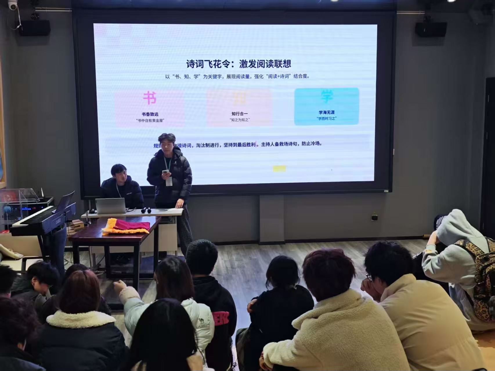 此次读书活动以诗词为纽带,不仅帮助青年读者跳出日常碎片化阅读的局限,重拾深度阅读的乐趣,更在交流中提升了专注力与思辨力,将阅读热情转化为学习动力,实现了知识汲取与心灵滋养的双重价值。未来,学院将持续推展此类阅读活动,不断丰富文化活动形式,推动青年群体形成常态化深度阅读氛围,让书香浸润校园每个角落。