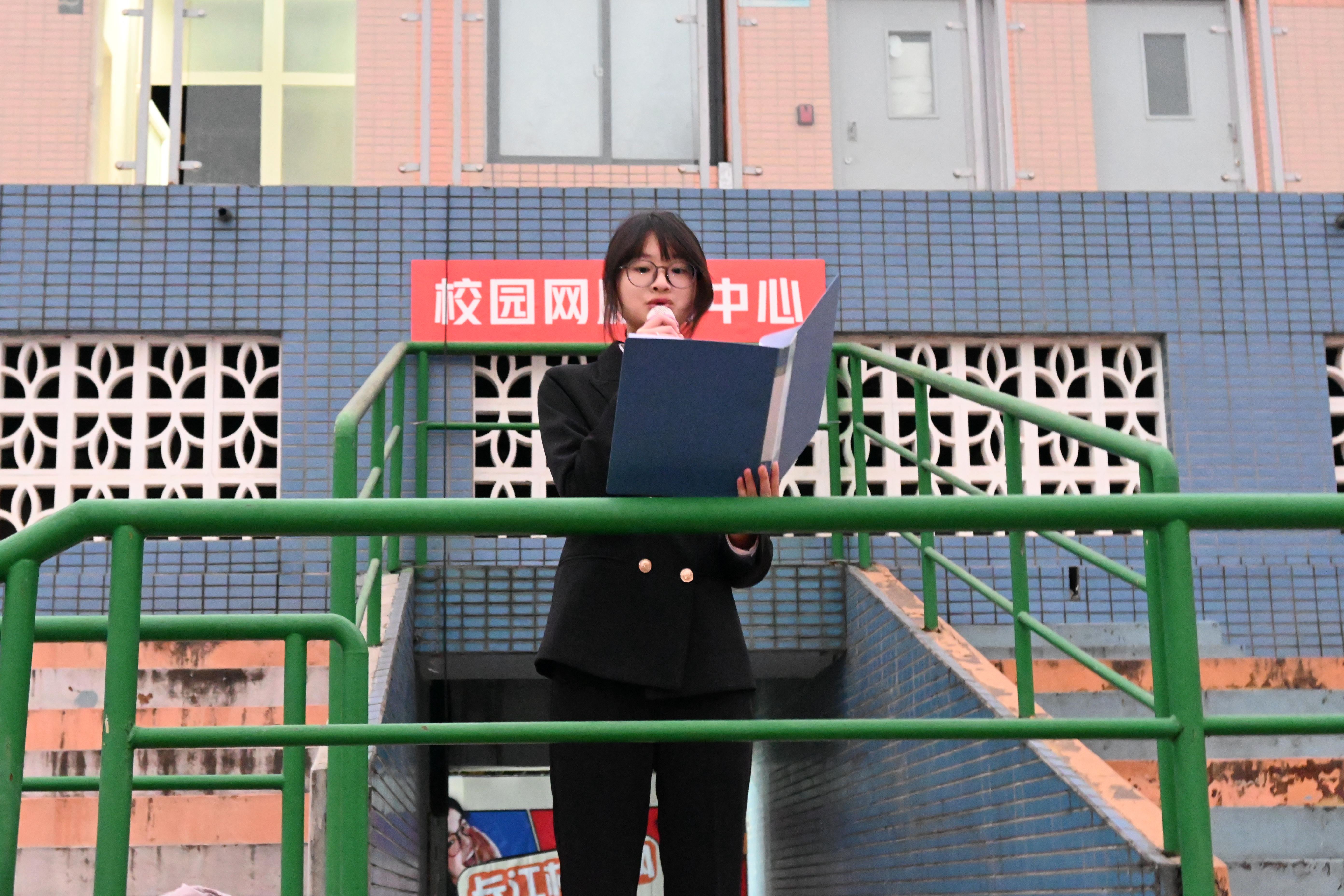 激昂高亢的国歌声奏响,国旗队队员迈着铿锵整齐的步伐护送国旗入场,全体师生肃立行注目礼,目送五星红旗冉冉升起,爱国情怀在每个人心中升腾。2025级环境艺术设计专业学生杨文若作国旗下发言,她以“汉字里的中国”为题,阐释汉字作为中华文明密码的深厚意涵,梳理从甲骨文到现代汉字的演变脉络,呼吁同学们从汉字文化中汲取养分,增强文化自信。