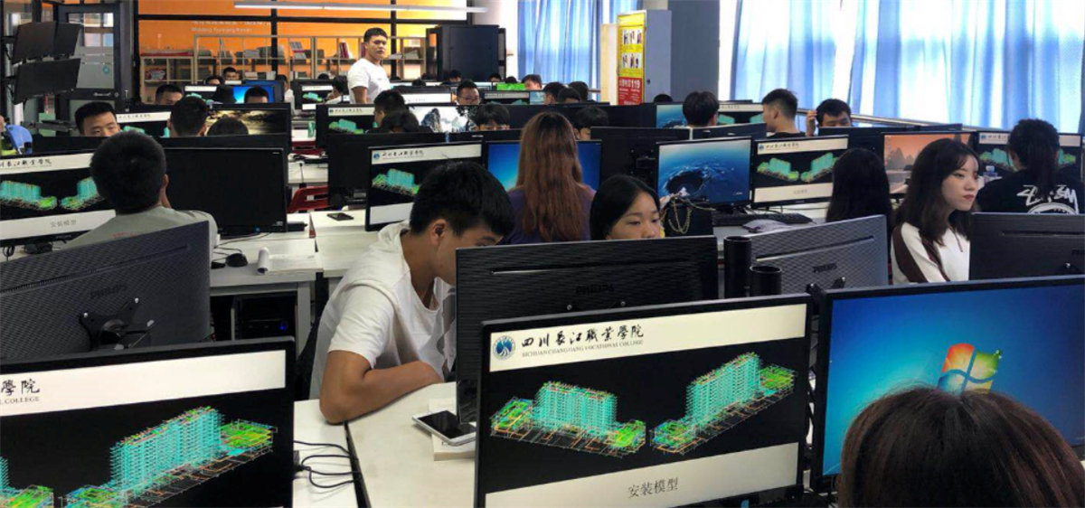 建筑工程技术综合实训中心可开展施工图纸绘制、建筑施工模型创建、通过虚拟仿真软件进行建筑施工的虚拟操作实践。