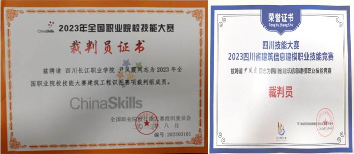 教师团队担任全国职业院校技能大赛建筑工程识图赛项裁判、四川省青年职业技能大赛主体赛决赛裁判、四川省建筑信息建模职业技能竞赛裁判等。