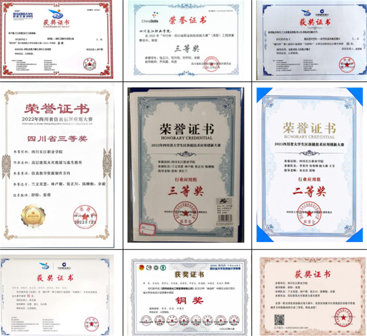 2021年四川省大学生区块链技术应用创新大赛二等奖1项、三等奖1项。