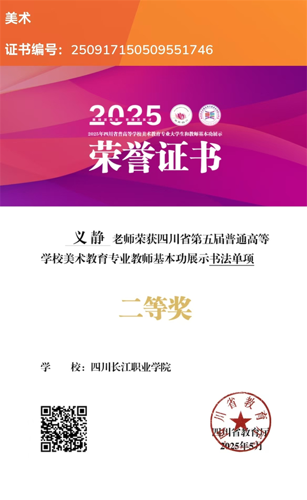 ·2025年 教师获第五届普通高等学校美术教育专业教师基本功展示二等奖